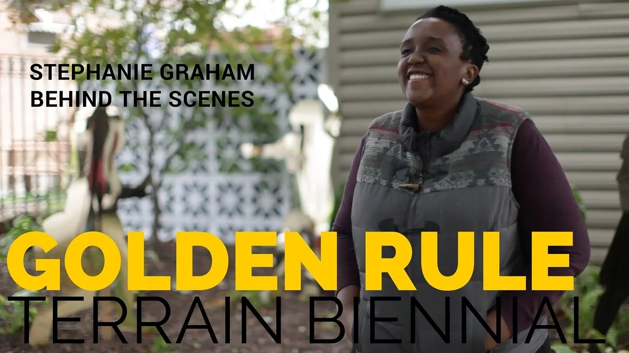 Curator Cecilia Vargas invited me to participate in the Terrain Biennial over the summer. Terrain Exhibitions is a project space started in 2011 by artist Sabina Ott that invites artists to create a site-specific interventions in a suburban front yard in Oak Park, Il. In 2015 , Terrain held its second Terrain Biennial, widening its reach and inviting neighbors to open their yards to artists projects. Curator Cecilia Vargas invited me along with artist Nora Maite Nieves to participate and create an installation at a home in Portage Park Illinois.